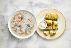 250/30 г • Тёмный ржаной хлеб с кориандром, подаётся с чесночным зелёным маслом.