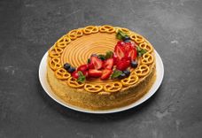 2160 г • Большой торт изготовим под заказ, для особого случая, который Вы, отмечаете в ресторане «Друзья». Торжественная подача торта с фейерверком и поздравлениями от ресторана. Оформление заказа на изготовление торта осуществляется за 3 дня до мероприятия.