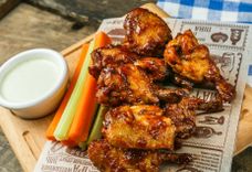 220/150 г • Обжаренный с чесноком куриный окорочок подаётся с фирменным пивным соусом и гречневой кашей.