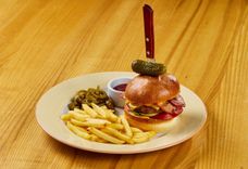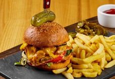 170/60/1 г • Полезный бургер на булочке собственного производства с котлетой из говядины, с сыром Чеддер, пикантным томатным соусом и сырным. Рекомендуем заказать порцию картофеля фри с кетчупом к мини бургеру.